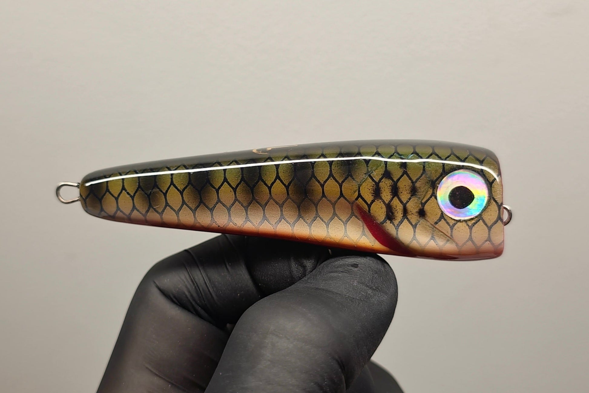 Can be fished as a popper or as a faster retrieving diving popper to give you a smoke trail.